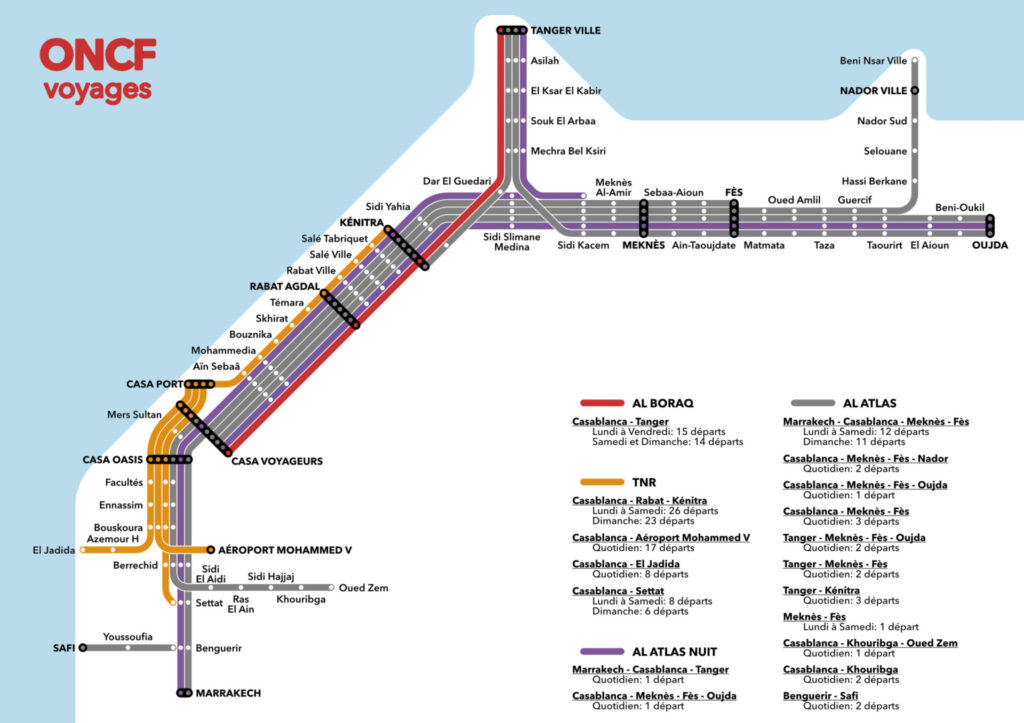 Trains in Morocco are operated by ONCF (Office National des Chemins de Fer).